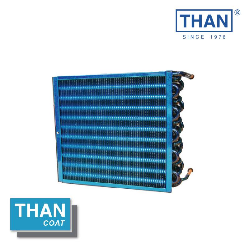 คอยล์ร้อนมาตรฐาน THAN ท่อทองแดงขนาด 3/8" อลูมิเนียมฟิน เคลือบพื้นผิวด้วย THAN Coat ซึ่งมีคุณสมบัติพิเศษช่วยป้องกันการผุกร่อน และลดการเกิดสนิมจากกรดอะซิติก และกรดซัลฟิวริก ที่เกิดจากการเก็บสินค้าต่าง ๆ ช่วยยืดอายุการใช้งาน สามารถใช้ได้กับระบบปกติและระบบ Inverter สามารถรองรับสารทำความเย็น R-22, R404a , R407c , R407f , R134a เป็นต้น